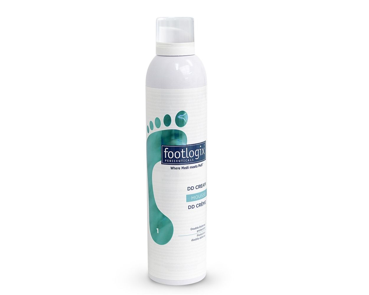 Footlogix DD Cream Mousse formule met Dermal Infusion Technology® en “Double-Defense”werking. DD Cream is een hydraterende mousse met ureum en spiraleen speciaal voor de droge en gebarsten huid. Het heeft verzachtende, verzorgende en antimicrobiële eigenschappen. Deze mousse is niet vet en plakt niet: ideaal voor wie niet van vette voeten houdt.
